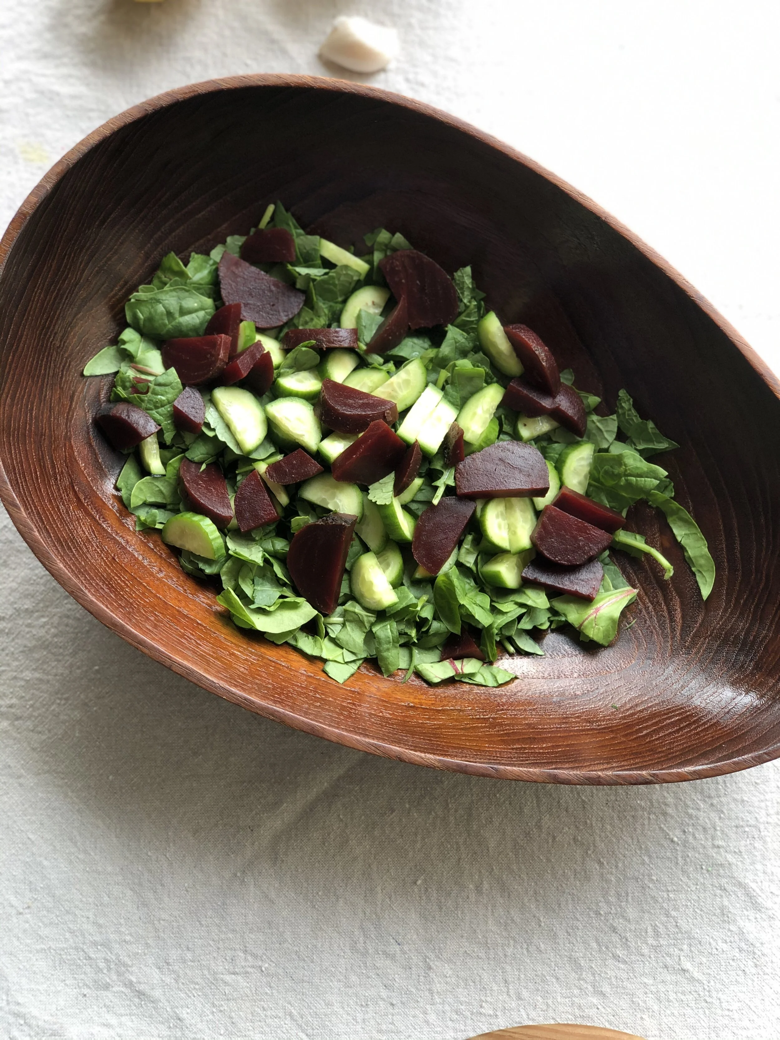 It was brought to my attention by my family friend Kelley that I have all these pictures on my Instagram with a beet salad and no recipe!? So because of you Kelley (Thank you.), I am posting a quick beet salad that I love to enjoy. I usually have this for lunch. I also serve it as a side with salmon or chicken for dinner. It usually pairs well with those because the dressing is a wonderful tangy lemon Dijon. By the way, this whole salad can be made quickly from all ingredients from Trader Joe’s. This one’s for you sweet Kelley, love you.